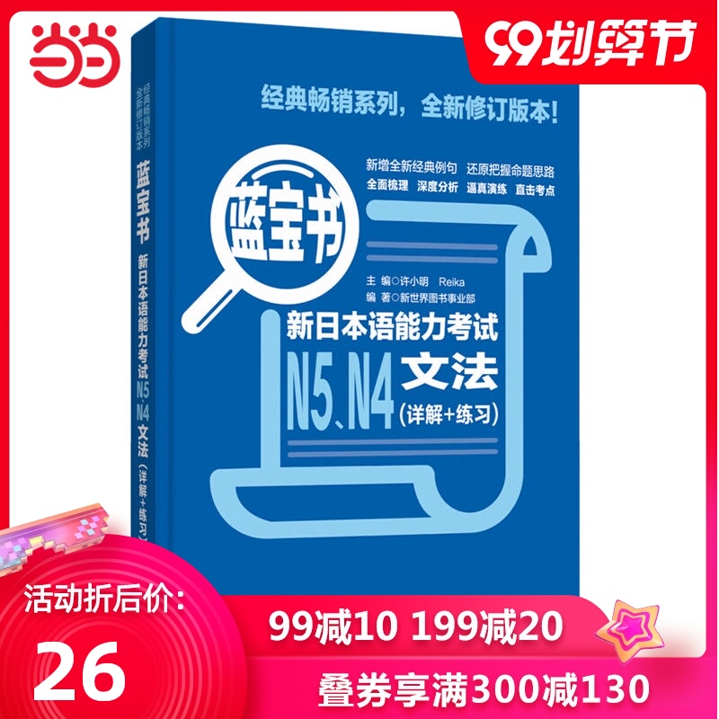 "Книга с сокровищами LAN Новый тест на знание японцевN5,N4Вход грамматики грамматики (подробное объяснение + практика) основана на способности новых реформ,КрышкаN5Грамматическая точка, которая должна быть освоена на сцене98индивидуальный,Также введено использование некоторых часто используемых слов;N4Часть основного практического схема предложения137индивидуальный,И выберите некоторые обычно используемые уважительные слова, чтобы объяснить.Каждая точка знания грамматики включает в себя соответствующие примеры предложения базового значения, общих объяснений использования и знаний в реальных вопросах.Через форму [Примечание],Суммируйте меры предосторожности, общее соответствие и обычное выражение каждой грамматической точки.Каждый блок содержит10Меньше грамматической точки,Каждая практика единицы включает в себя основные упражнения и практические упражнения.Резюме часть приложенияN5Обычно используемые глаголы и методы деформации предложений,индукцияN5Использование и общий метод подсчета часто используемых градиентов.Резюме аналогичных деталей на основе граммаN4Грамматическая точка значения или формы в грамматике,Анализировать.Новая ревизия - это разделение книги «Новый мир».2010Год-2015Все реальные вопросы новогоднего экзамена по возможностям японского языка провели повторные и в ходе исследования. Статически проанализировал репрезентативные регулярные испытательные сайты и составленные в примеры предложения.Эти примеры предложения изменили первоначальное только одно истинное предложение, что привело к неполным случаям шаблонов предложений. Обновленные примеры предложения являются более типичными, представительными и перспективными.Читатели могут достичь последствий обучения одного и трех с помощью повторных примеров чтения и памяти и полностью освоить правильное использование шаблонов предложений.......