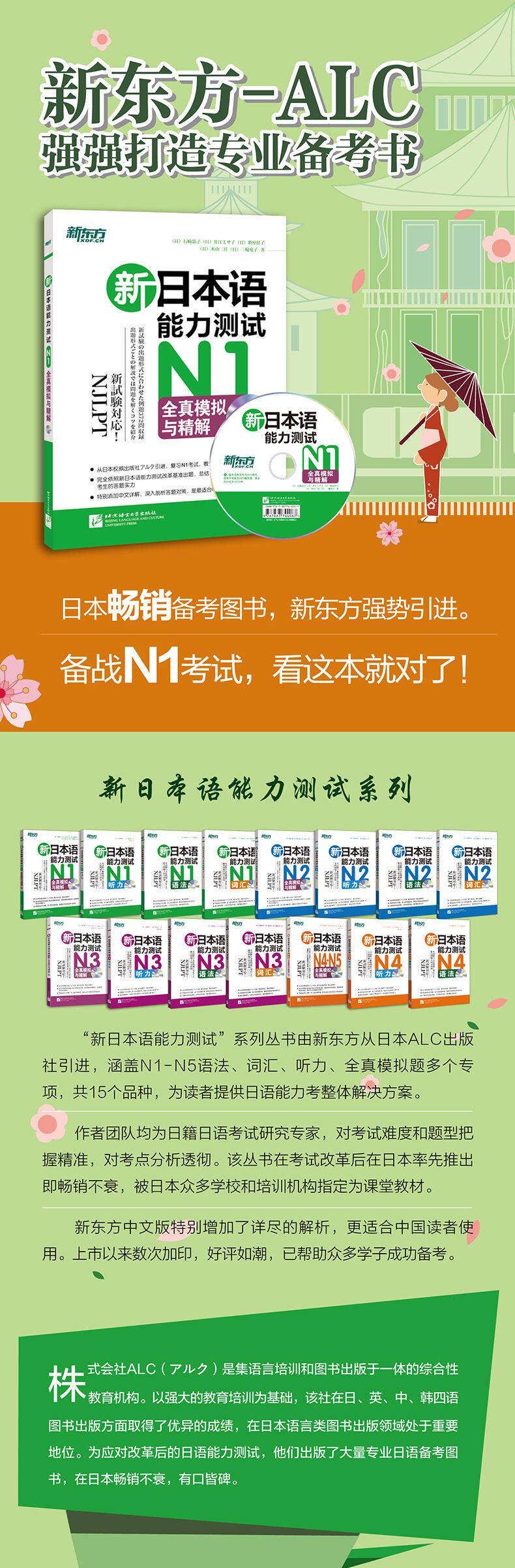 Клуб в стиле завода -это комплексное учебное заведение, объединяющее языковое обучение и издательство книг.Основываясь на сильном образовании и обучении, агентство достигла отличных результатов в публикации четырех книг на языке в Японии, Великобритании, Китае и Южной Корее и занимает важную позицию в области языковой публикации в Японии.Чтобы справиться с японским тестом на способности после реформы, они опубликовали большое количество профессиональных японских книг по подготовке к подготовке, чтобы помочь многим кандидатам подготовиться к экзамену.Тест JSSST, разработанный японским устным языком агентства, вызвал огромный отклик в Японии и был широко продвинут в Шанхае, Шанхае, Даляне и других местах, и многие компании признали.New Oriental и ALC объединили усилия для представления и публикации“Новая серия тестирования на японские языки”Сериал, включая грамматику, прослушивание, словарный запас, все вопросы и т. Д.Эта серия обозначена многими японскими школами и учебными заведениями в качестве учебников в классе, и имеет высокую репутацию среди японских кандидатов.