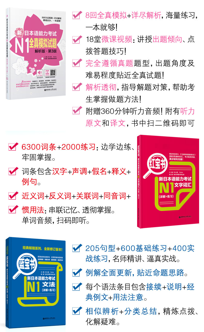 [N1] Новый японский экзамен по возможностям в японском экзамене Рубер Книга+Книга с сокровищами LAN+Полные вопросы истинного симуляции+чтение оранжевого книги+