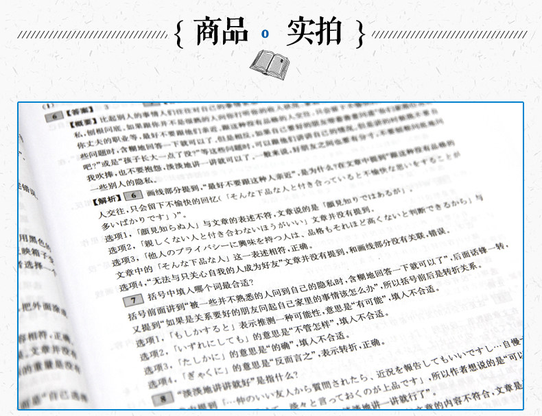 2. Практика единицы 10 раз.Полностью следуйте структуре типа вопросов нового теста на способность.Избранные известные статьи, такие как японские оригинальные учебники, романы, проза и обзоры СМИ.Отбор имеет характеристики практичности, абстракции и рациональности, чтобы помочь кандидатам справиться с различными статьями для чтения.