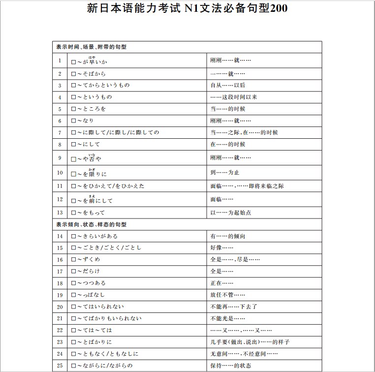 Новый японский экзамен по вопросам возможности n1 Грамматика должен иметь предложение типа 200