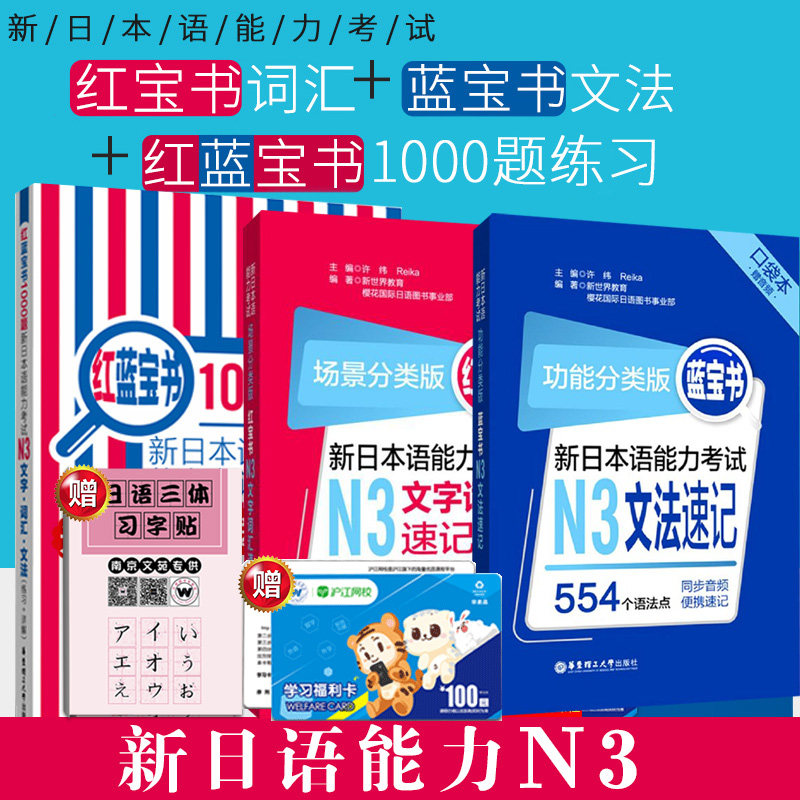 Красная Lanta Book 1000 Вопрос Новый Японский тест на владение n3 карманные книги потирание n3 слов Скорость Скорость n3 Скорость грамматики Помните японский