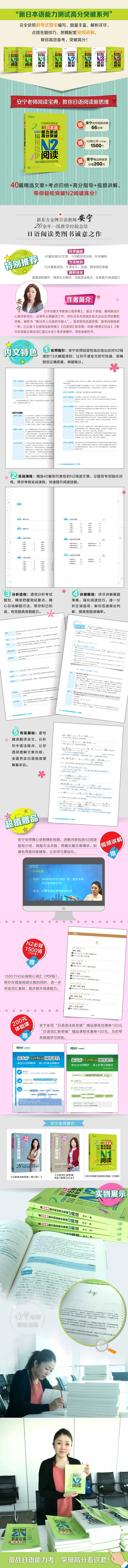 <Новый прорыв в тесте на знание японского языка: чтение N2>Он является преемником г-на Ан Нина, влиятельного преподавателя японского языка в New Oriental.<Новое мышление японской грамматики><Новое размышление о японском словаре><Новый прорыв в тесте на знание японского языка: чтение N1>Еще один шедевр позже.Учитель Эннинг творчески обобщает в книге рекомендации по решению задач по чтению N2, помогая вам сэкономить время и силы, не читая полный текст, читать быстро, точно фиксировать правильный ответ и эффективно повышать точность и скорость ответов на вопросы.Избранные классические статьи для чтения N2 в книге имеют разнообразные темы и точные уровни сложности.Они обобщают ключевые моменты обычных экзаменов, определяют стратегии сдачи тестов и усиливают обучение по типам вопросов, чтобы вы могли полностью попрактиковаться на практике перед экзаменом и чувствовать себя уверенно в экзаменационной комнате.Учитель Ань Нин лично записывает замечательные видео и дает подробные рекомендации, которые помогут вам быстро пройти уровень. Он поставляется с вспомогательными видеообъяснениями, N2, который необходимо запомнить 1500 слов (версия PDF), пробным онлайн-занятием за 200 юаней и бесплатными подарками премиум-класса.Чтобы преодолеть балл по чтению N2, достаточно одной книги!