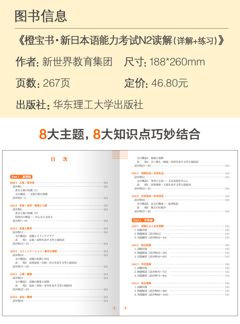 Подлинная N2 Orange Book New Японская тест на владение навыком N2 Чтение (подробное объяснение+практика) Японское обучение подкреплению чтения N2 содержит 600 тестовых вопросов, чтобы взять красный синий сокровище книга 1000 Слова слова текст Грамматика второго уровня