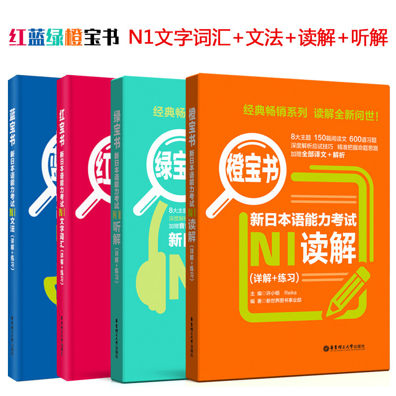 Новый японский экзамен n1 Red Treasure Book+Sapphire Book+Book Orange Treasure Book+Lvbao Книга 4 тома 4 Книга Восточно -Китайского университета Технологии Пресс N1 Слова текстовая грамматика.