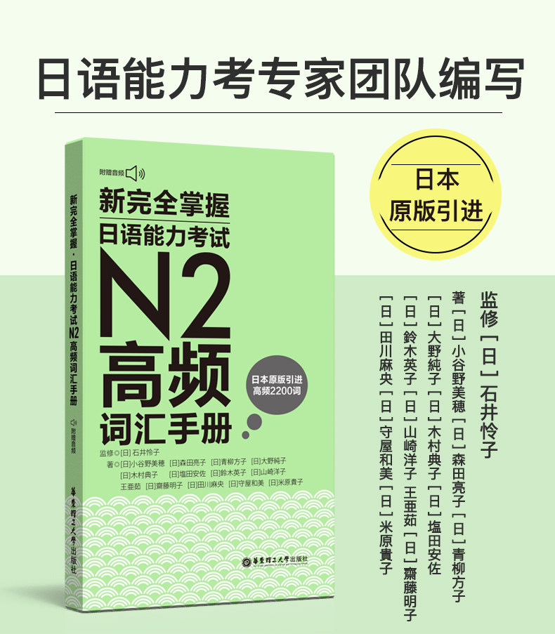 Эта книга представляет собой книгу слова, специально предназначенная для экзамена N2.В этой книге слово разделено на главы, глаголы, допускают, спайки, соединенные слова, продолжение слов, вздох и другие главы.“ трафик”&Ldquo; здоровье”&Ldquo; межличностные отношения&Rdquo;Одна из основных особенностей этой книги заключается в том, что каждая глава оснащена двумя статьями, которые помогают читателям понять конкретное применение слов для улучшения эффектов обучения.Информация, связанная с Японией, специально добавлена в Приложение, и соответствующие фоновые знания могут быть расширены с помощью приложения.