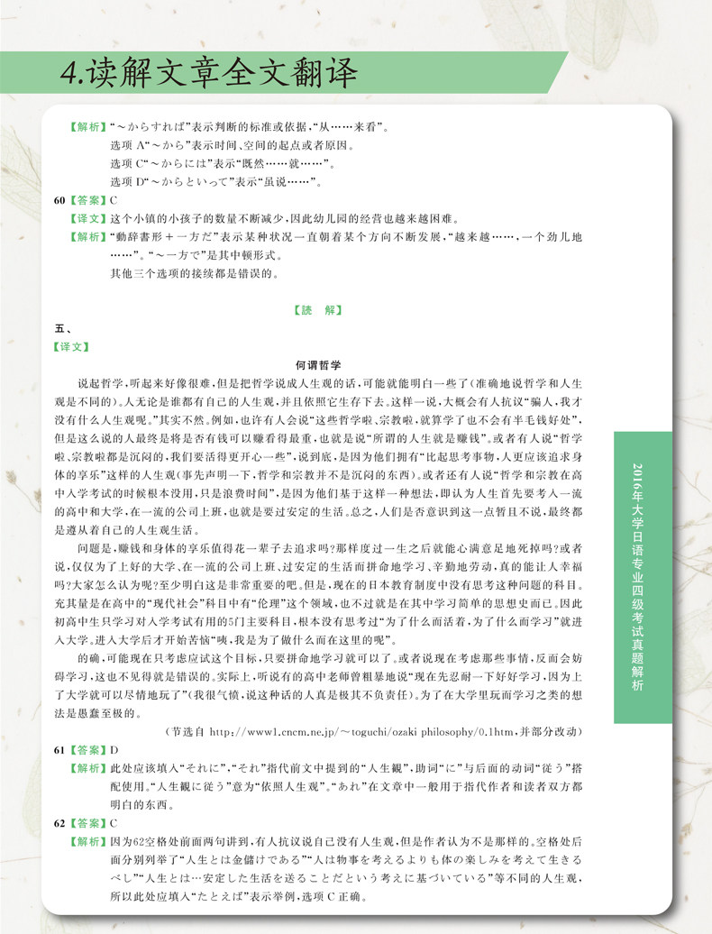 Анализ реального вопроса экзамена четвертого уровня в японском профессиональном тесте университета 2014 года.