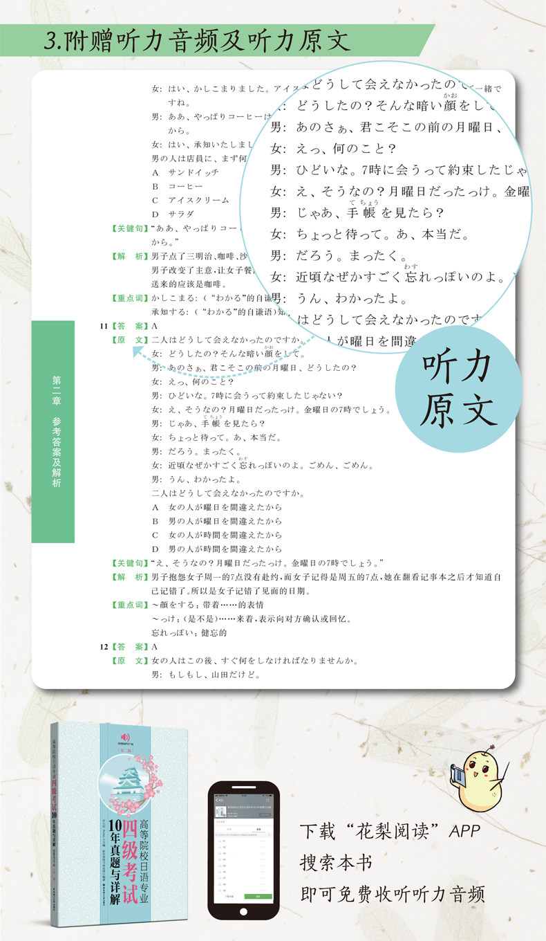 Изучение языка - это процесс непрерывного циркуляции от практики к теории до практики.Цель этой книги здесь.Японские майоры 4 тестов - это всего лишь форма и средства для тестирования языковой практики и способствовать улучшению языковых навыков.