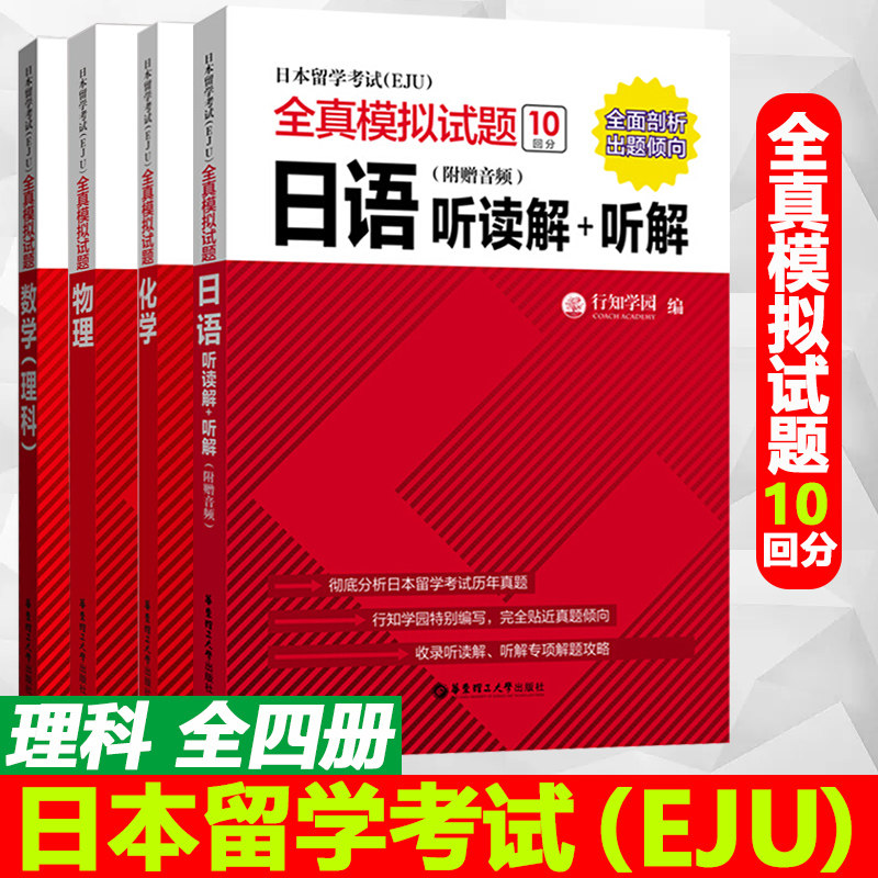 Экзамен Японии за рубежом (EJU) Полное истинное моделирование Вопросы физики+химия+математика+японское решение для прослушивания и прослушивания. Четыре книги японского изучения за рубеж
