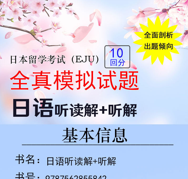 Подлинное японское исследование за рубежом экзамен EJU Полный истинный моделирование Вопросы японского прослушивания и чтение+прослушивание Новая стандартная японская новая японская практика. Введение самостоятельно самостоятельно -Strawdy Японский учебник Японского обучения за рубежом