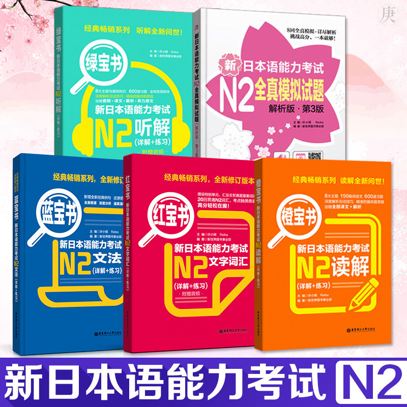 Японская резиновая книга Текст. Словарь+Blue Treasure Book Grammar+Orange Screen Book Solution Решение для чтения+Зеленая книга прослушивание+Полный реальный вопрос о моделировании Новый тест на японский язык.