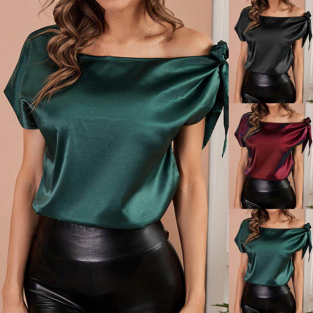 Летняя корейская модная шелковые топы женщины блуус пуловер Pure c