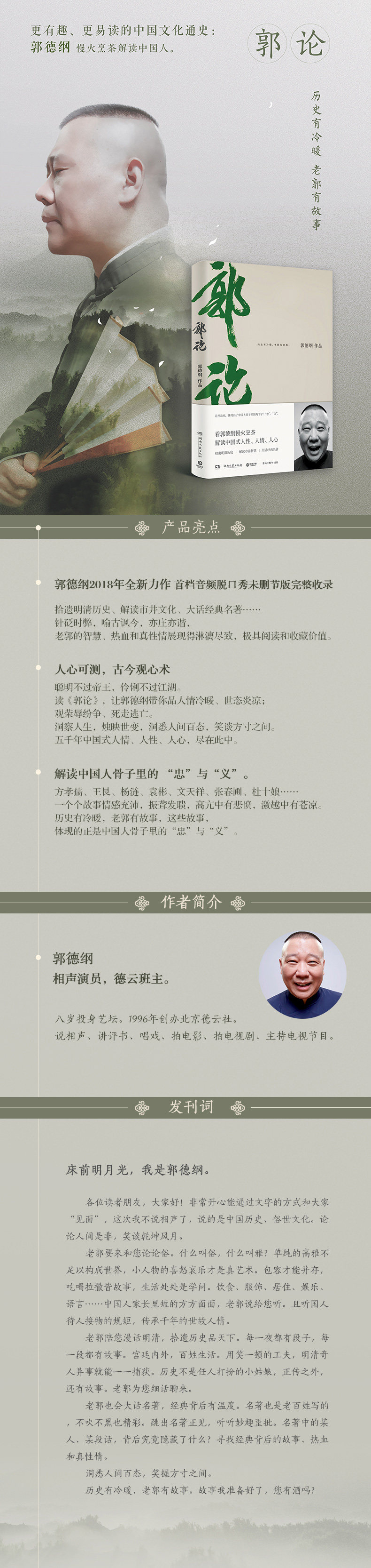 Возьмите историю династий Мин и Цин, интерпретируйте классические шедевры города и классические шедевры…&Hellip; Guo Degang использует более уникальную перспективу и более температурную историю для интерпретации китайских костей&Ldquo; Zhong&rdquo“ праведность”.Понимание в жизни, свеча меняется, а история, литература и философия находятся на месте.Приготовление чая медленно, продвинутое и отступление, и ценить человечество, человечество и человечество в стиле китайского стиля.Мудрость, кровь и истинный темперамент Лао Го показали здесь.