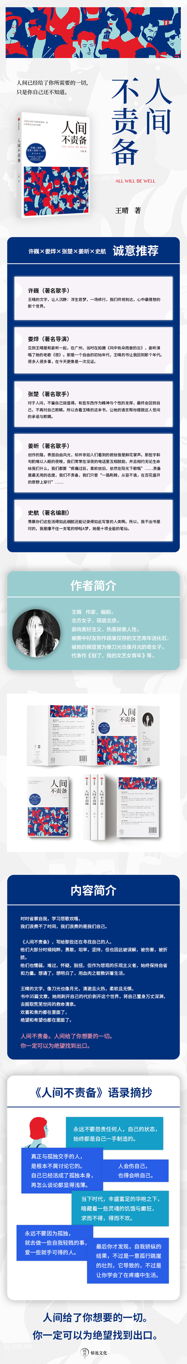 Что касается человеческого мира, то он того стоит, если не врать самому себе.Некоторые вещи, как выражение духа и личности, со временем вернутся в процесс того, равен ли человек самому себе и больше не обманывает себя.Так что прочитайте эту книгу Ван Цин, и пусть ее язык поможет вам избавиться от обещаний и обмана в этом мире.