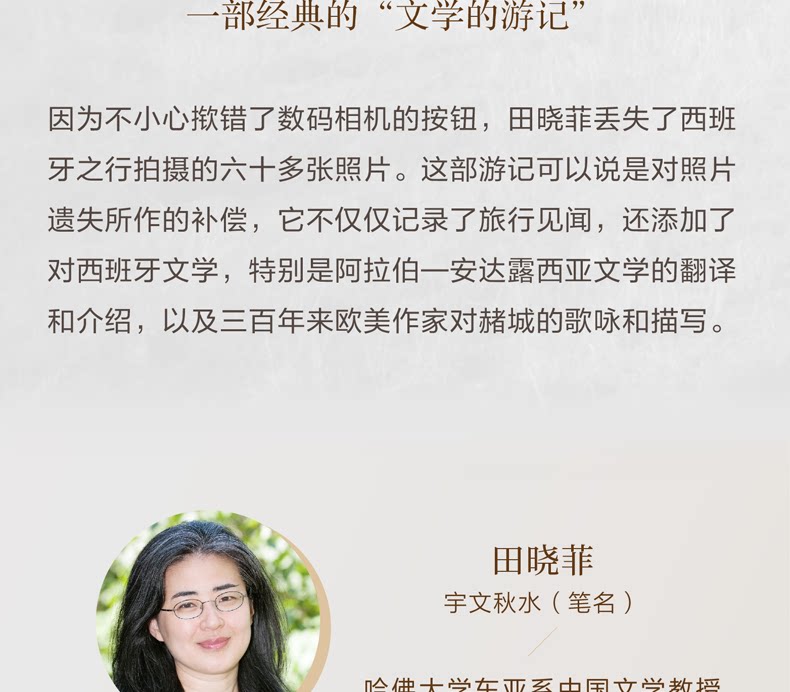 Tian Xiaofei, профессор китайской литературы в Университете Гарвардского университета, когда -то путешествие по Tancheng как конец города, натягивая три жемчужина на равнине Анда -са, Испания, Испания——Эти три испанских города, на которых глубоко влияет арабская культура, кажутся три красивых серого резных резных окон, демонстрирующих великолепное, загадочное и глубокое древнее царство.
