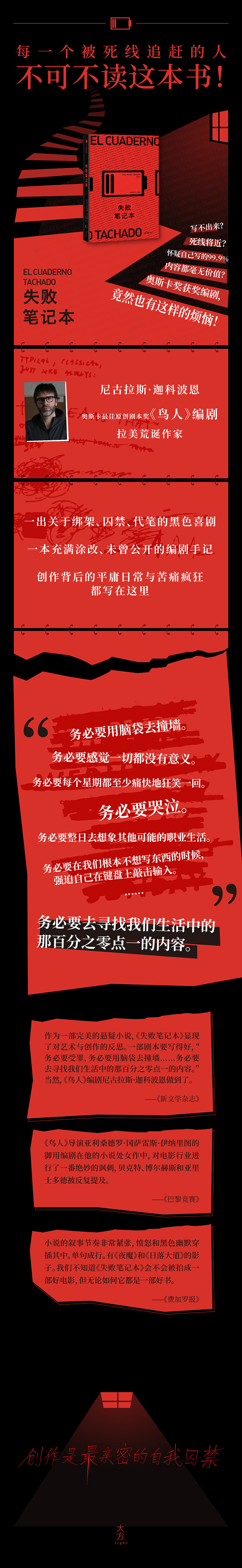 «Неудача Notebook» - дебют сценариста аргентинского фильма Николаса Гаркобена.Весь роман находится в форме дневника в BureJolo, описывающем опыт похищения главного героя в течение семи лет и создания сценария фильма в подвале для создания сценария фильма.