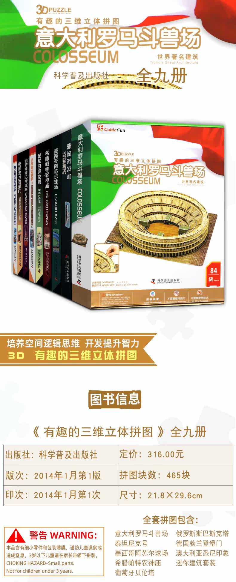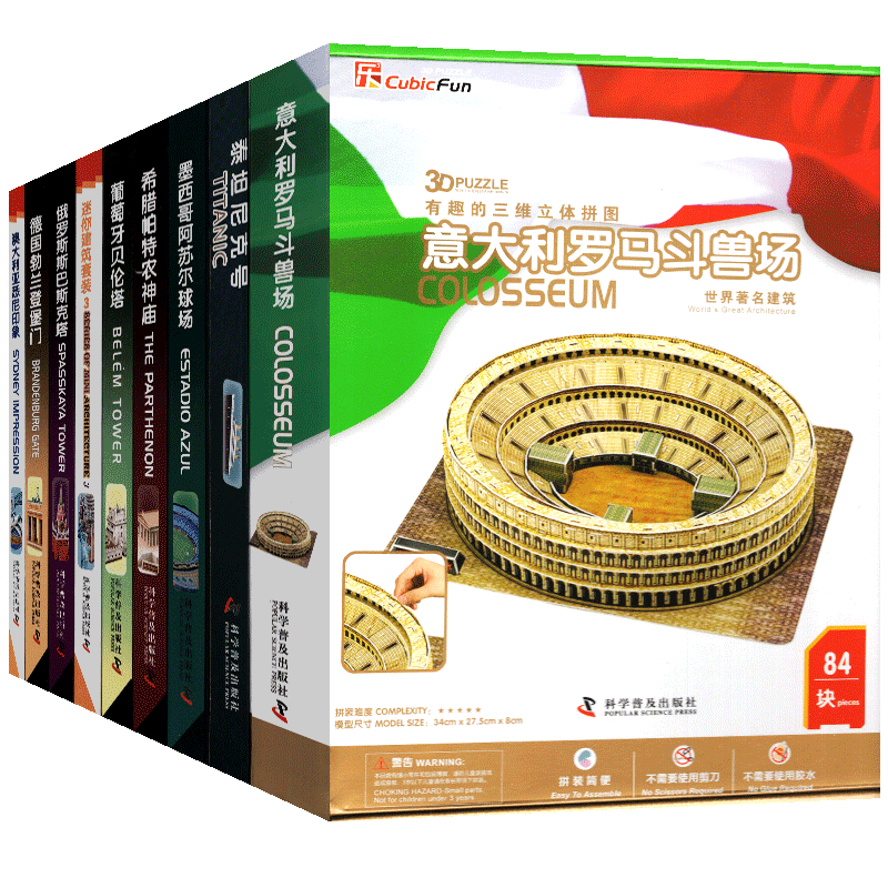 Все 9 интересных трехмерных трехмерной головоломки Австралии Сиднейский впечатление/титаник/итальянский римский битва и другие головоломки Детской головоломки мальчики и девочки, игрушечные игры с декомпрессией взрослых, 3D -модель