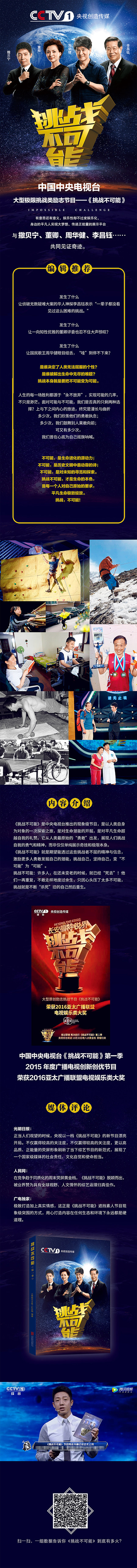 «Вызов невозможному» — это программа феноменального уровня, запущенная CCTV.Это путешествие исследования, объектом которого являются люди, исследование потенциала жизни и дань уважения обычным жизням, которые превосходят сами себя. Оно происходит от самых примитивных человеческих существ.&Ldquo; храбрый”Отправляйтесь, чтобы показать мужество и дух людей, чтобы бросить вызов себе, а не просто сами показывать свои чудесные навыки и крайности.