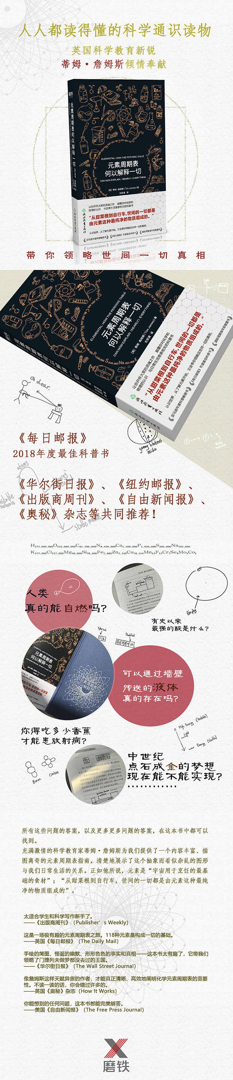 Время Джеймс, полный страстных преподавателей по науке, использовал эту книгу, чтобы предоставить нам множество руководящих принципов таблицы цикла элемента с богатым содержанием и странными иллюстрациями, четко показывая взаимосвязь между этой абстрактной и, казалось бы, грязной графикой и нашей повседневной жизнью.Как он сказал, элемент&Ldquo;”&Ldquo;”.