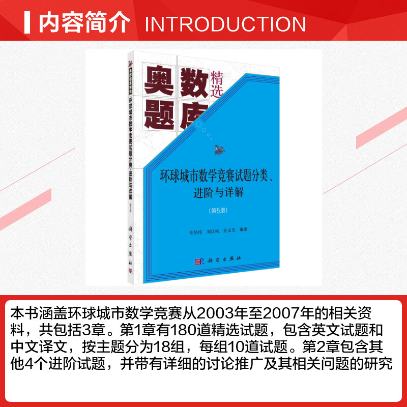 Эта книга содержит соответствующую информацию о Всемирном соревновании по городской математике с 2003 по 2007 год и включает в общей сложности 3 главы. Глава 1 содержит 180 избранных тестовых вопросов, включая тестовые вопросы на английском языке и переводы на китайский язык.Они разделены на 18 групп по темам, по 10 тестовых вопросов в каждой группе.Глава 2 содержит остальные 4 дополнительных вопроса с подробным обсуждением, продвижением и исследованиями по соответствующим вопросам. Каждый вопрос состоит из нескольких вопросов и упражнений для заинтересованных читателей.В главе 3 даны подробные объяснения вопросов теста в главе 1. Эту книгу можно использовать в качестве справочника для одаренных учащихся, изучающих математику в средней школе, учащихся, готовящихся к участию в олимпиадах по математике в средней школе и самостоятельному поступлению в университет, учителей математики в средней школе, учителей и студентов, изучающих математику в обычных колледжах и университетах, а также любителей математики.