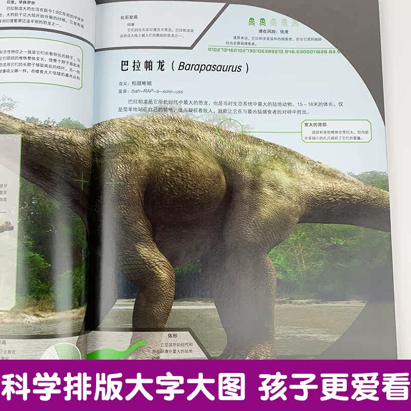| В этой книге представлены более 70 представителей динозавров, от грозного тираннозавра до зауроподов; от танкоподобного Анкилозавра и чрезвычайно мощного защитного оружия Трицератопса до свирепого Когтя, Велоцираптора и Археоптерикса.——Предки современных птиц и т. д. использовали форму перископа, чтобы продемонстрировать основные знания об этих динозаврах, включая размер, повадки, распространение, скорость и типичные характеристики. |