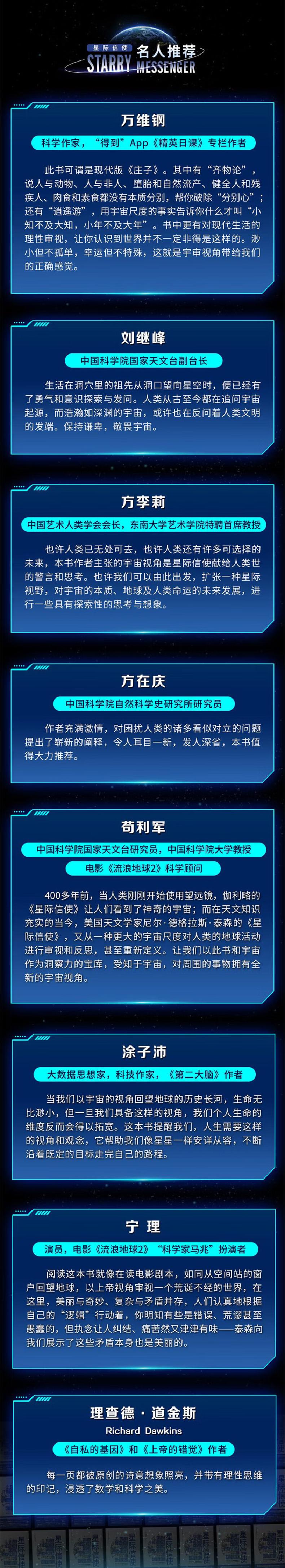 Ниль·Дегелас·Тайсон, Нил Деграс Тайсон, известный астрофизик в Соединенных Штатах. Он написал много популярных научных бестселлеров, в том числе «астрофизика для занятых», «Возьмите вселенную как метод», «Полная история эволюции вселенной за 14 миллиардов лет».Он выиграл награду «Стивен Хокинг по научной коммуникации» и «Выдающаяся медаль государственной службы» НАСА, и известен как «Карл·Преемник Сагана был назван «100 лучшими влиятельными деятелями» (Time Magazine 2007) и «один из 100 влиятельных выпускников Гарварда» (журнал Harvard Alumni в 2007 году).Он был директором планетария Хайдена Американского музея естественной истории с 1996 года; Астероид 13123 был назван в его честь в 2001 году.В последние годы он также организовал популярный научный документальный фильм «Вселенная:« Путешествие к времени »в последние годы (обновленная версия эпического популярного научного фильма« Вселенная Карла Сагана »в 1980 году) и сыграл себя в четвертом сезоне« Большого взрыва жизни ».Гао Шуанг, доктор философии в Астрономии в Университете Гейдельберга в Германии, пост -декорат Национальной обсерватории, преподавателя, магистра , «История истории», «Наука», тестирование таких произведений, как Чжу Ронгксинг ».