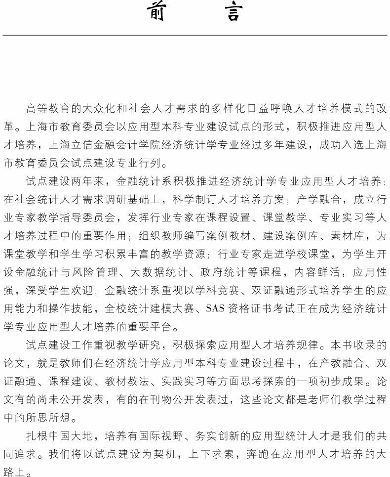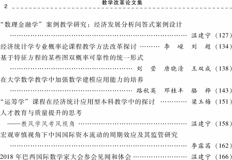 «Коллекция прикладной статьи бакалавриата по реформе преподавания» проводила дискуссии и расследования, связанные с строительством учебных программ, организации преподавания, управления преподаванием и моделью обучения талантов, а также объединяет группу документов по реформе преподавания.Ян Тингчян, профессор, декан Школы статистики и математики.Первая партия лидеров дисциплины Cross -Century в Министерстве финансов опубликовала более 50 работ, председательствовала в более чем 3 национальных проектах по социальным наукам и получил выдающуюся награду школы в учебнике «Статистика», опубликованную China Finance и Economics Press. «Статистика» Учебник получил первый приз выдающихся учебников Министерства финансов.