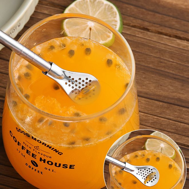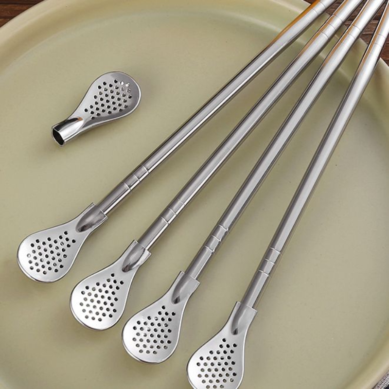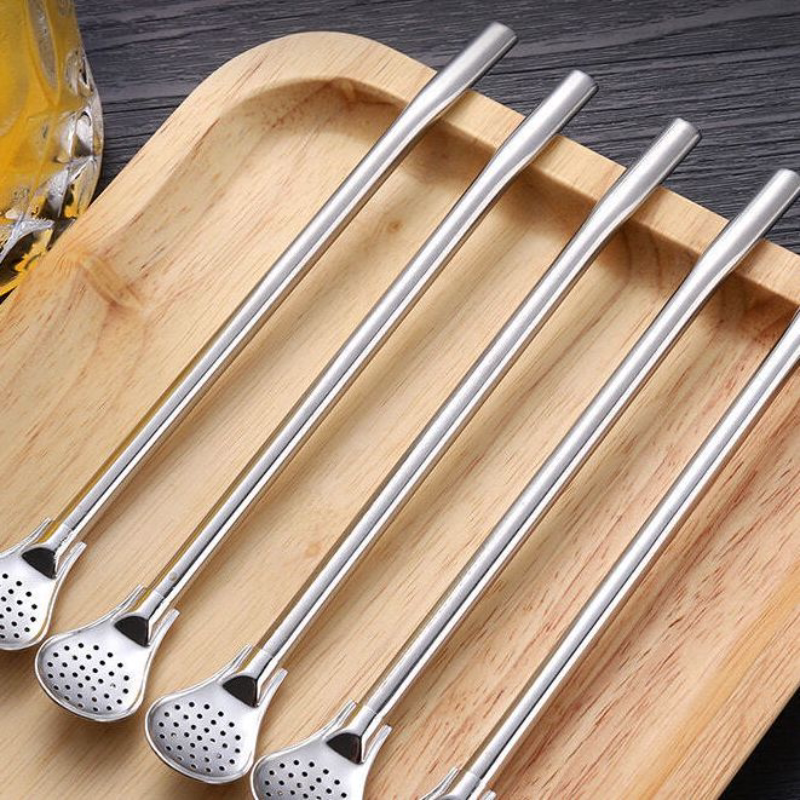 Длинная трубочка, ложка из нержавеющей стали, палочка для смешивания, металлический фильтр