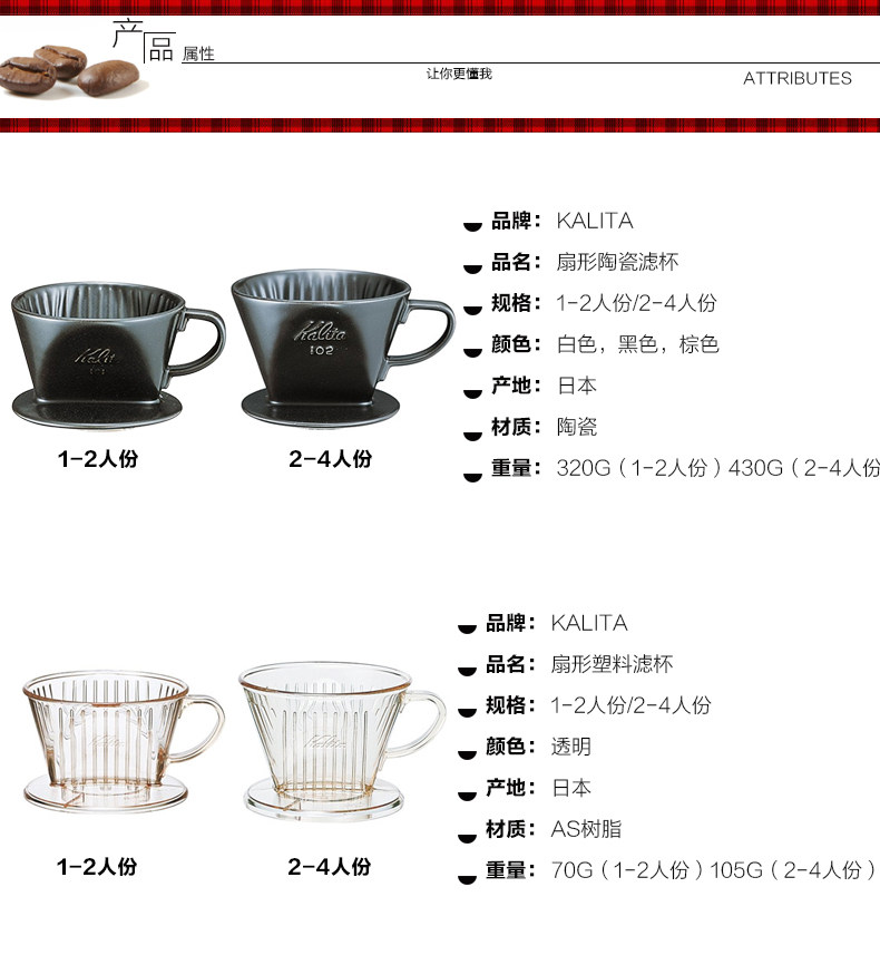Калита Калита японская бренда вентилятор вентилятор в форме фильтра Cup Cup Filter Home Ceramic Filter Cup Plastic Filter Cup