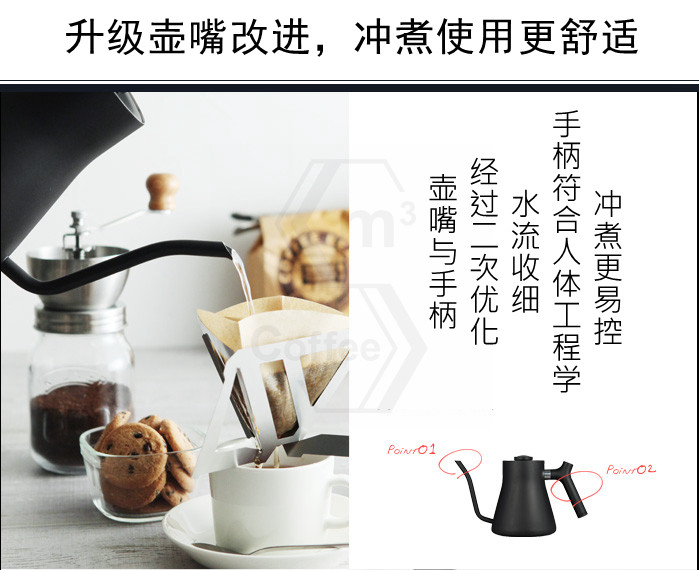 Небольшой носик позволяет удобно заваривать кофе каждый раз.