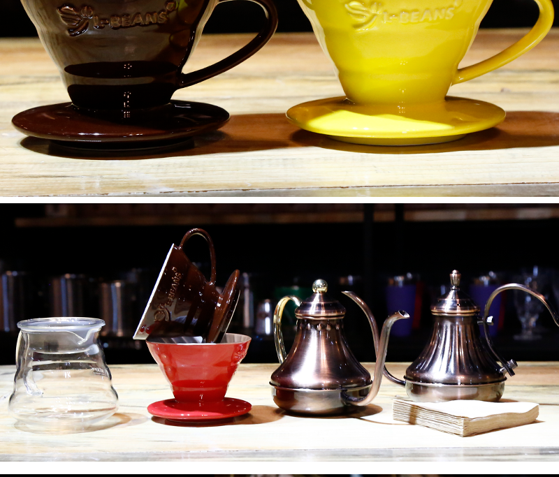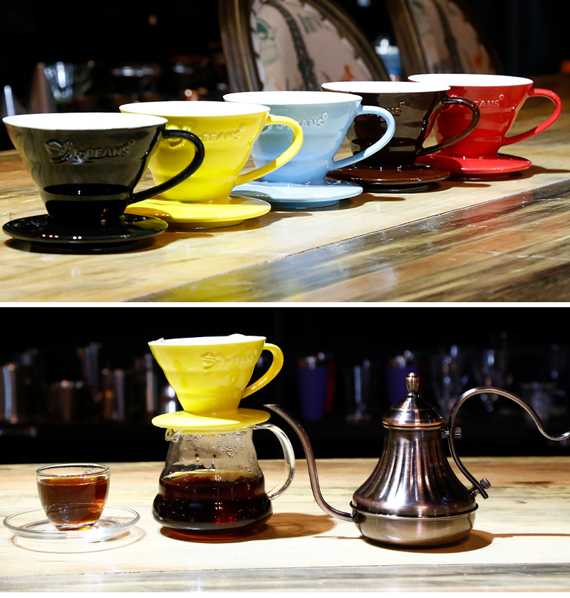Устройство кофейного устройства с ручной работы с керамическим качаликом для ручной работы с юн -дуэтом, чтобы поделиться сбором в руке кастрюли.