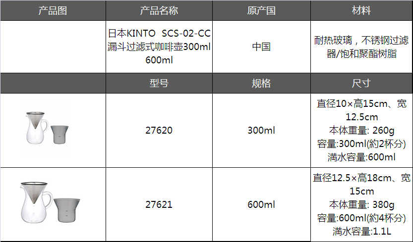 Новый продукт Бесплатная доставка Япония Kinto SCS-02-CC Filter Filter Coffee Pot Ручная рука промывка стекла.