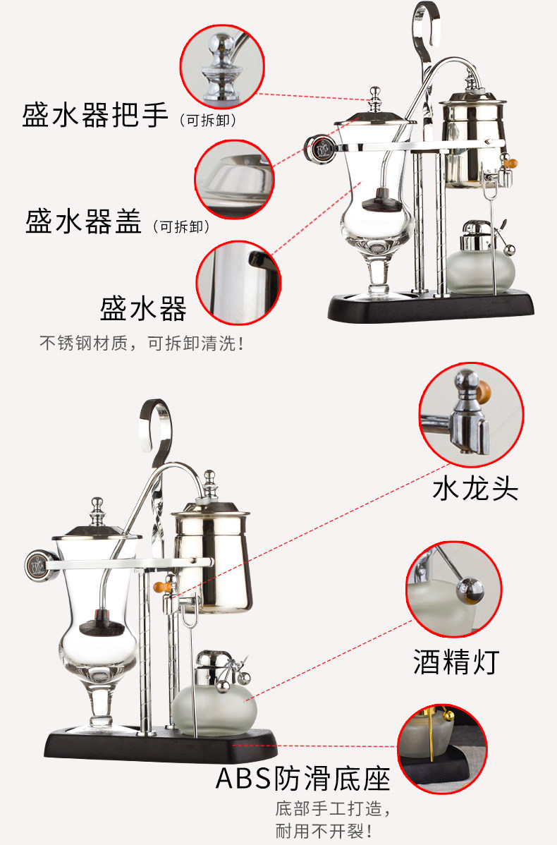 Королевская кофе-машина, стеклянный кофейник, «сделай сам», Бельгия, золото и серебро