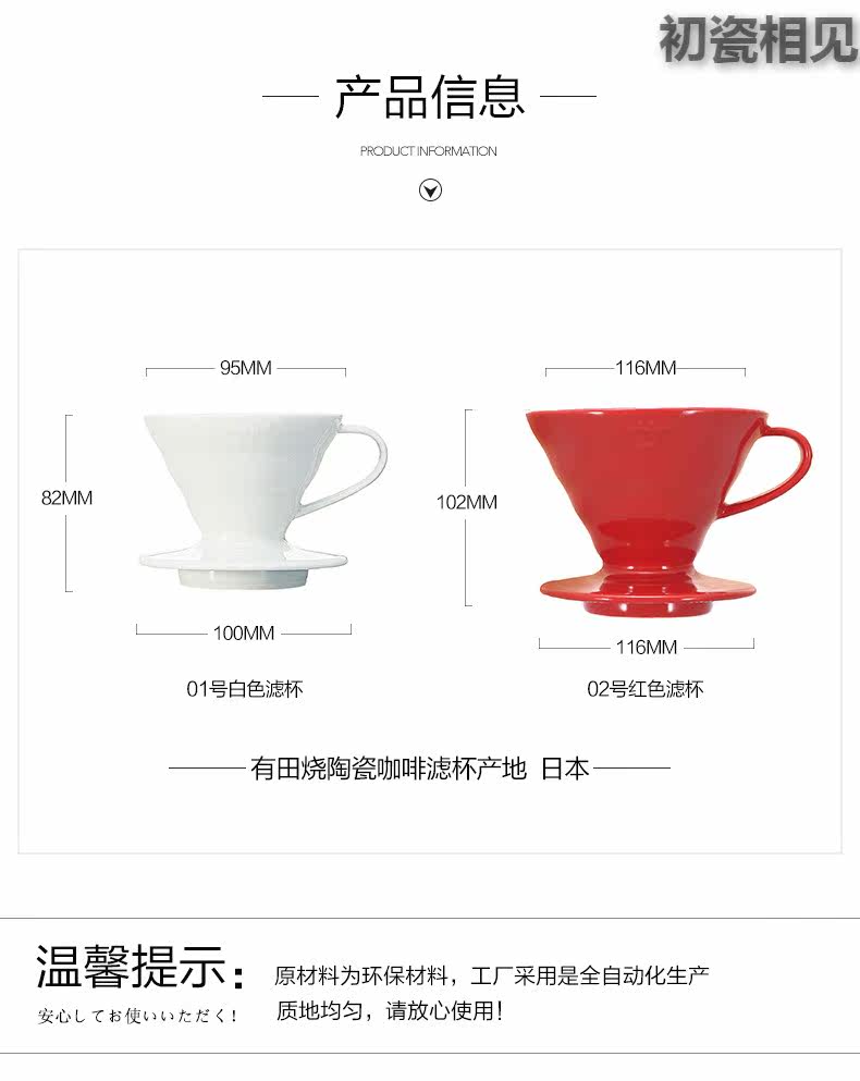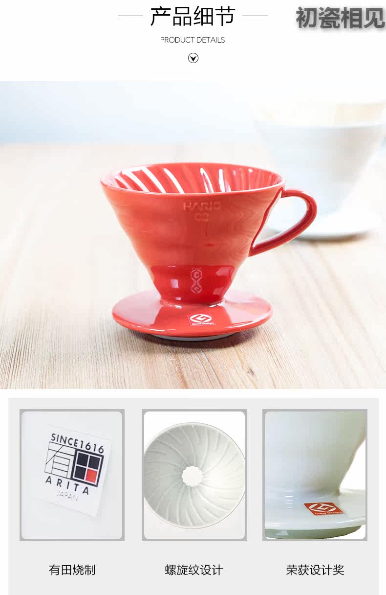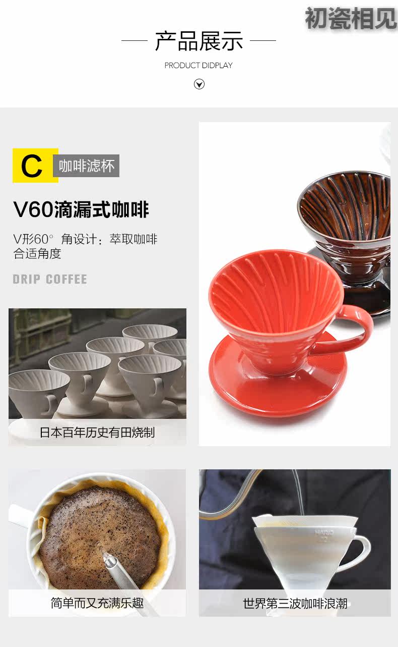 初瓷相见 V60 Арита, выпущенный керамический кофейный кофейный фильтр для ручной работы, чашка капельницы капельница vdc-02