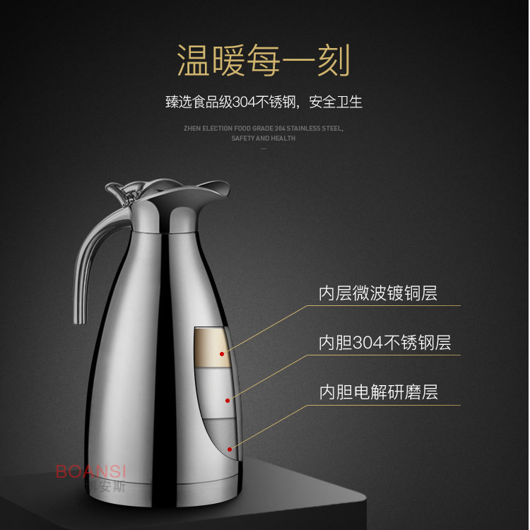 Кофейник из нержавеющей стали для домашнего использования, вместительный и большой чайник, вакуумный термос, нержавеющая сталь AISI 304