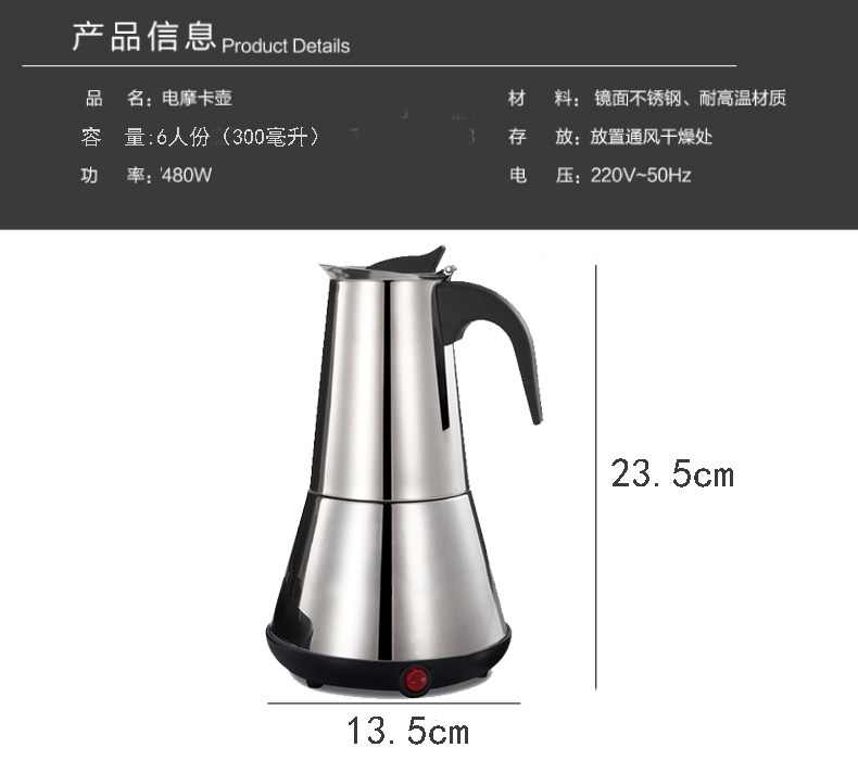 Электрическая нержавеющая сталь мокко горшок итальянский кофейник Домохозяйный офис электрический нагреватель кофе мокко кофе кофе