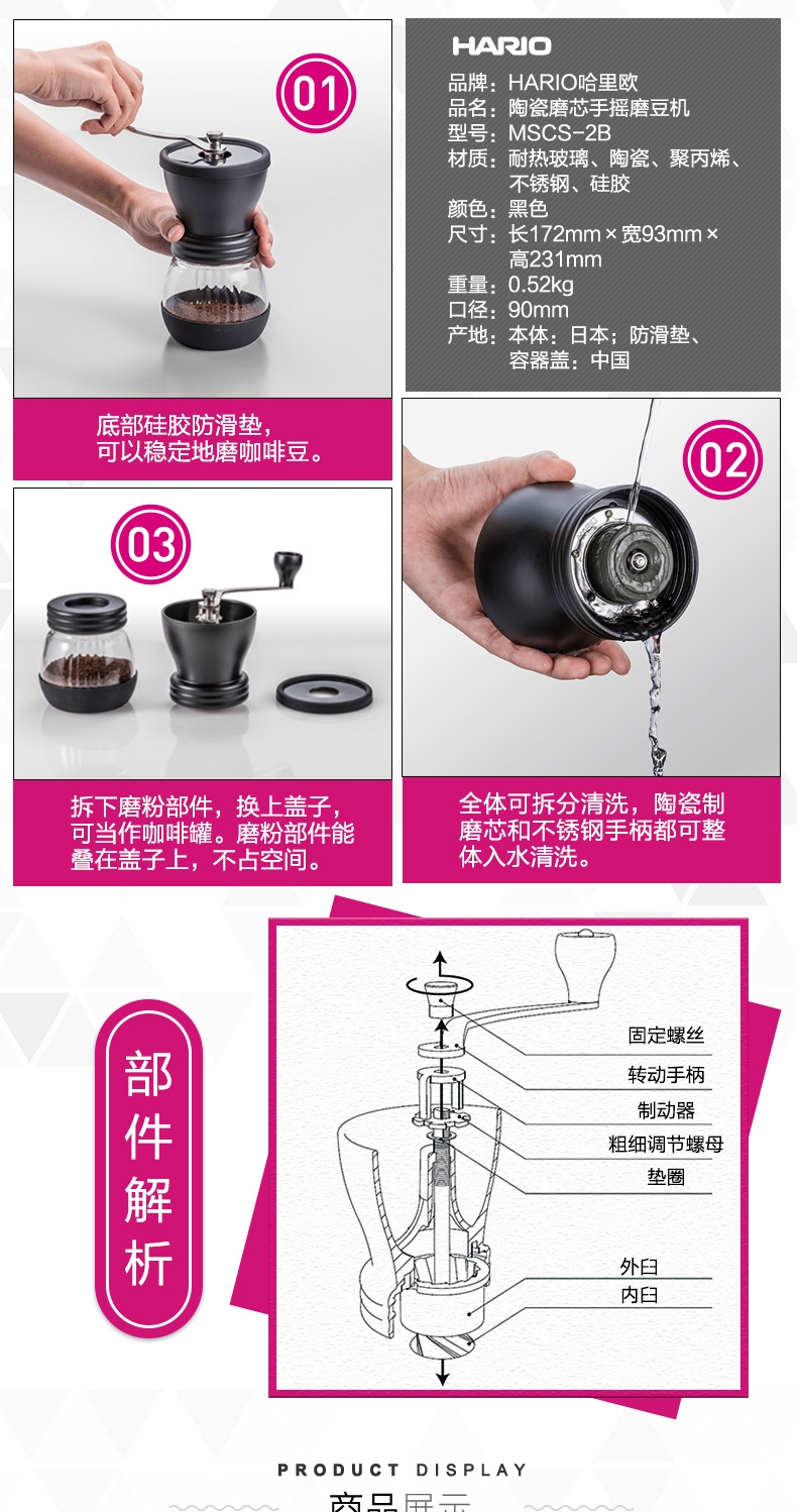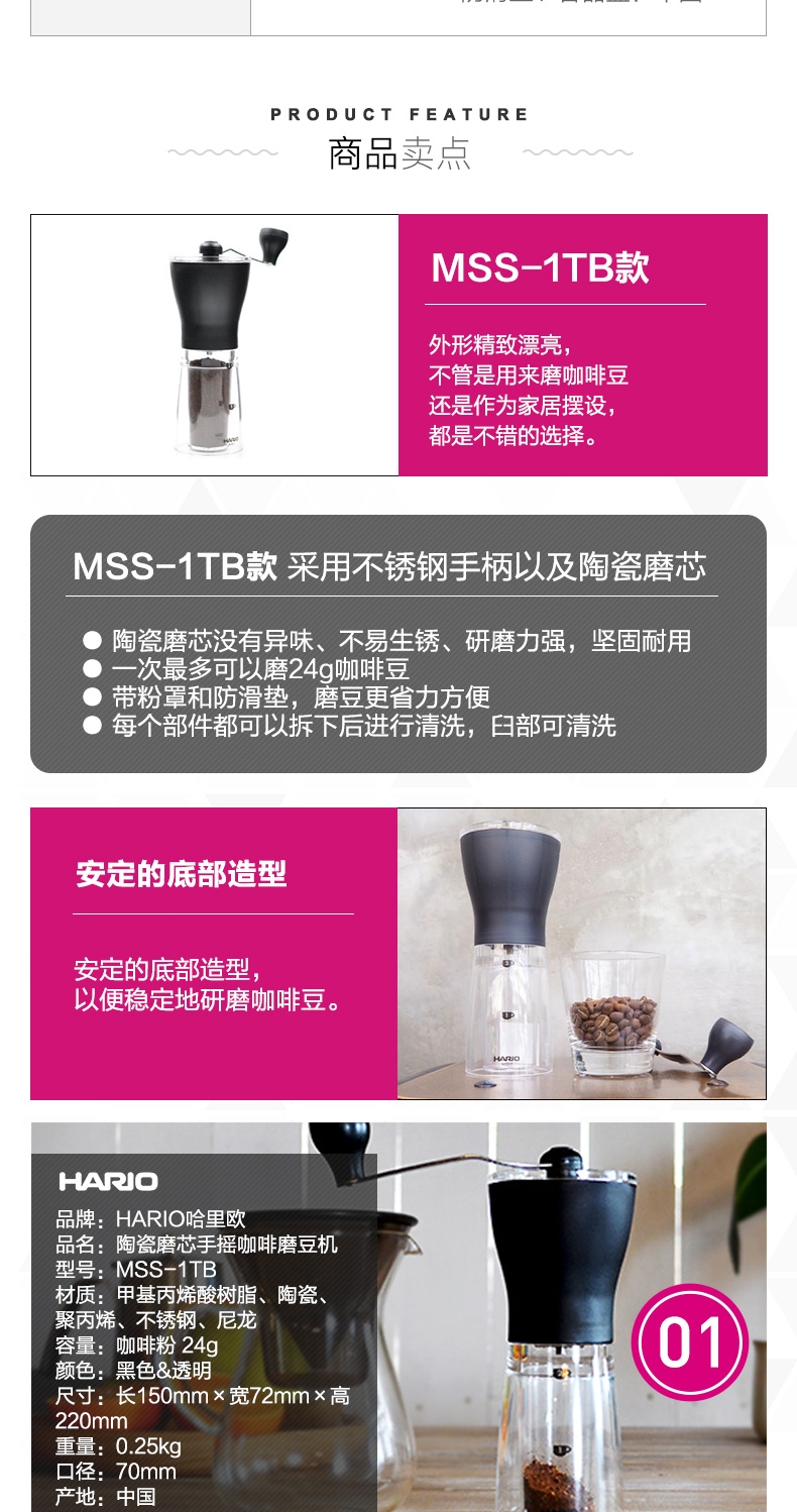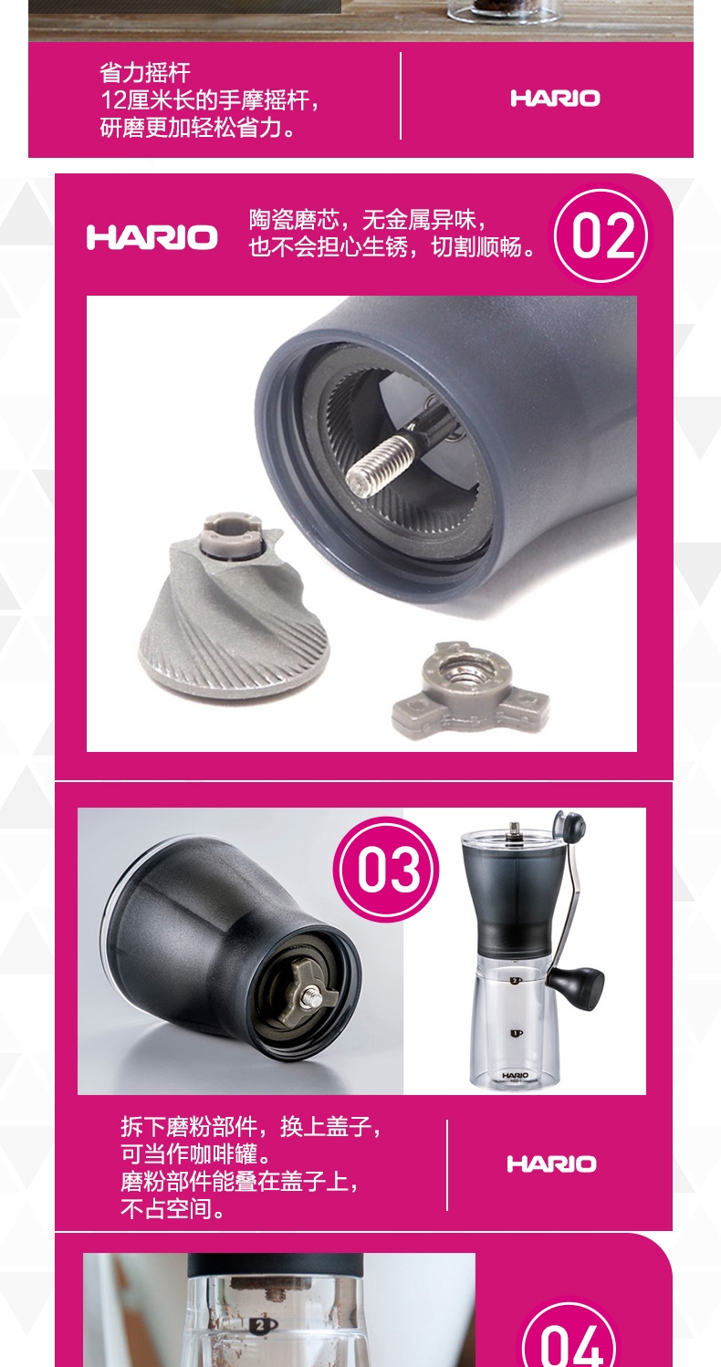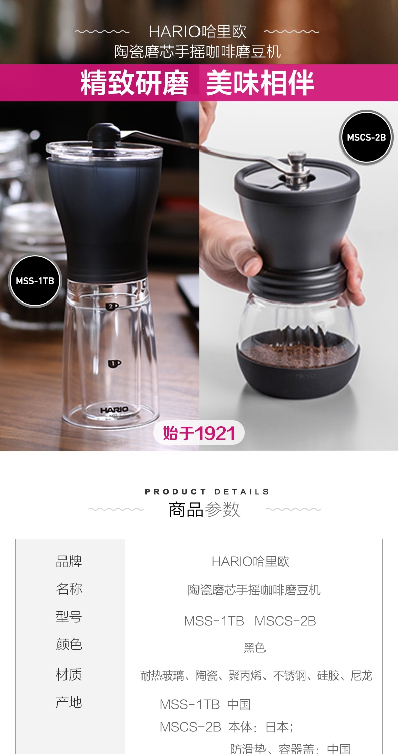 Япония прямая почтовая рассылка Hario High -End Ceramics Core сделайте ручную ручную машину для кофейного зерна.