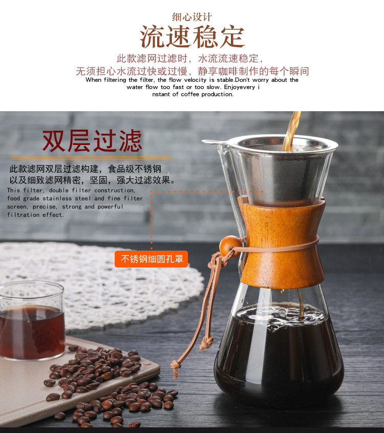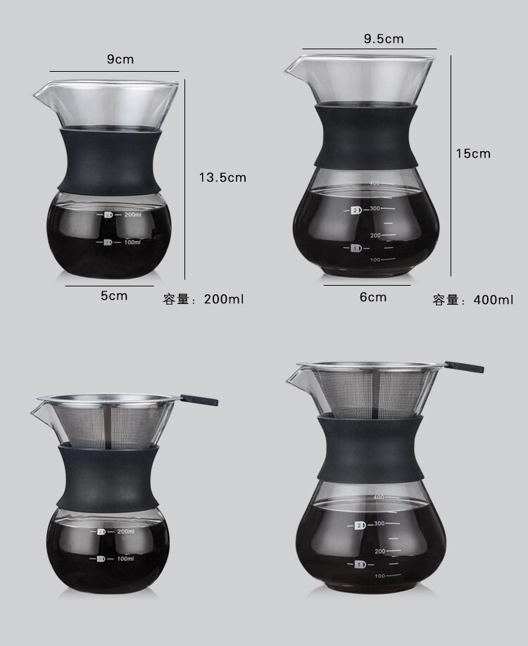 Стеклянный кофейник, комплект из нержавеющей стали, портативный мундштук