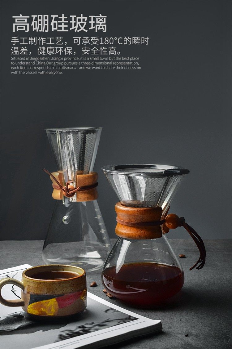 Стеклянный кофейный кофейник, комплект, портативный мундштук