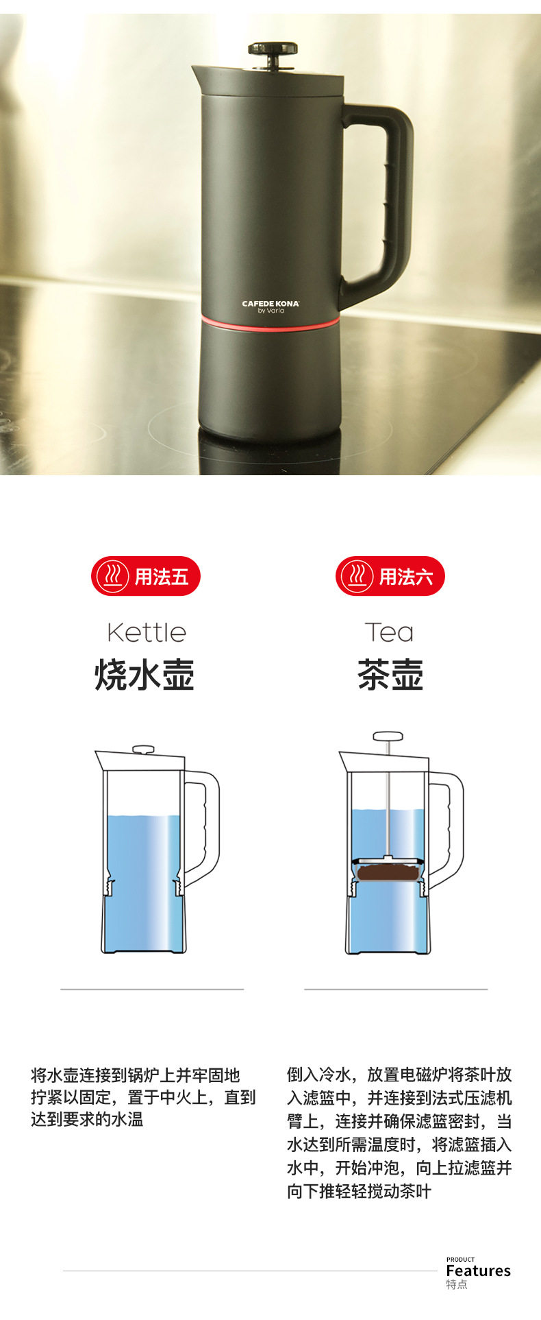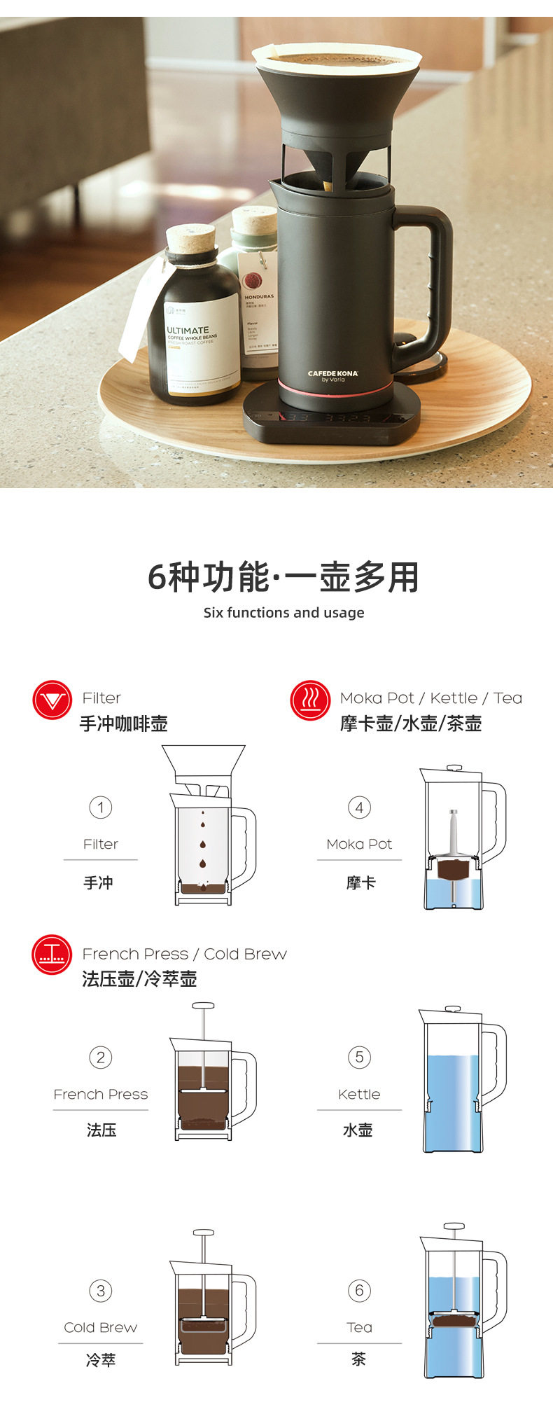 Многофункциональный горшок с шестью используемыми кофейником из нержавеющей стали Домашний пузырь чай ручной