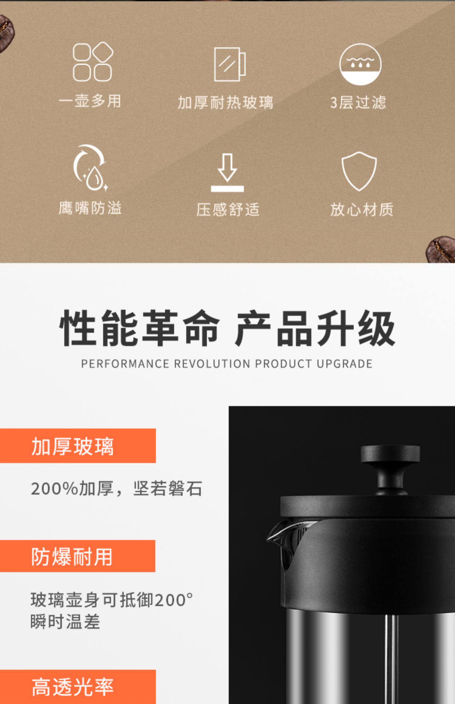 Guokoff French Pating Pot Coffee Coffee Pot Hand Hands French French Filter.