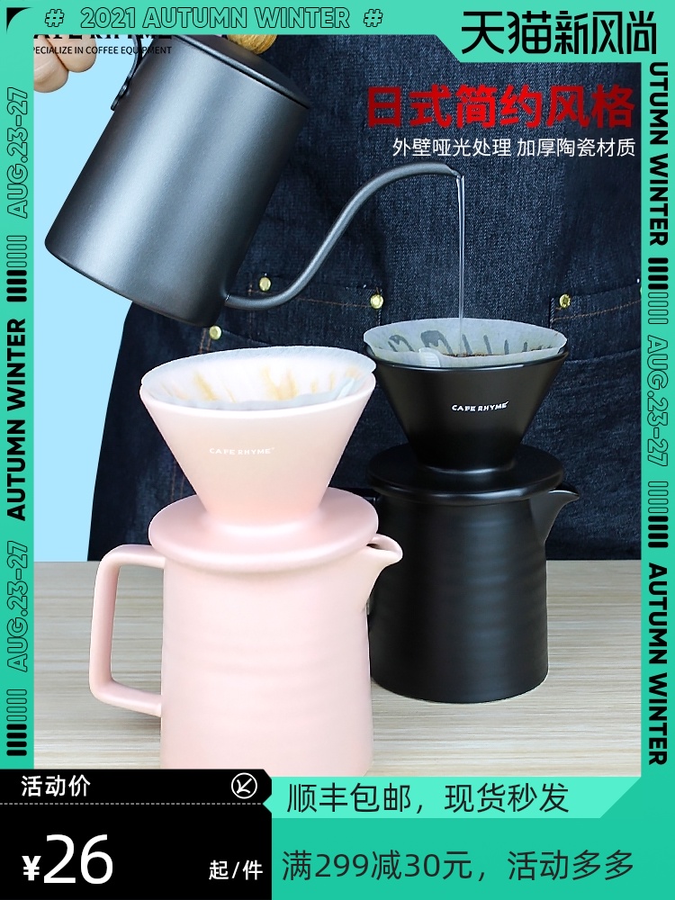 Кафе Rhyme Spiral Ceramic Coffee Filter Cup Cup Brewing Coffee Pot Set Shating Pot Домохозяйство в японском стиле прекрасный рот