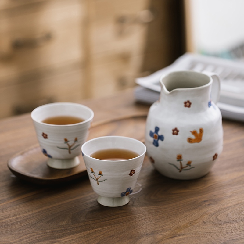 Японский креативный ретро керамический кофейный комплект для домашнего использования, чайник, ручная роспись, в цветочек