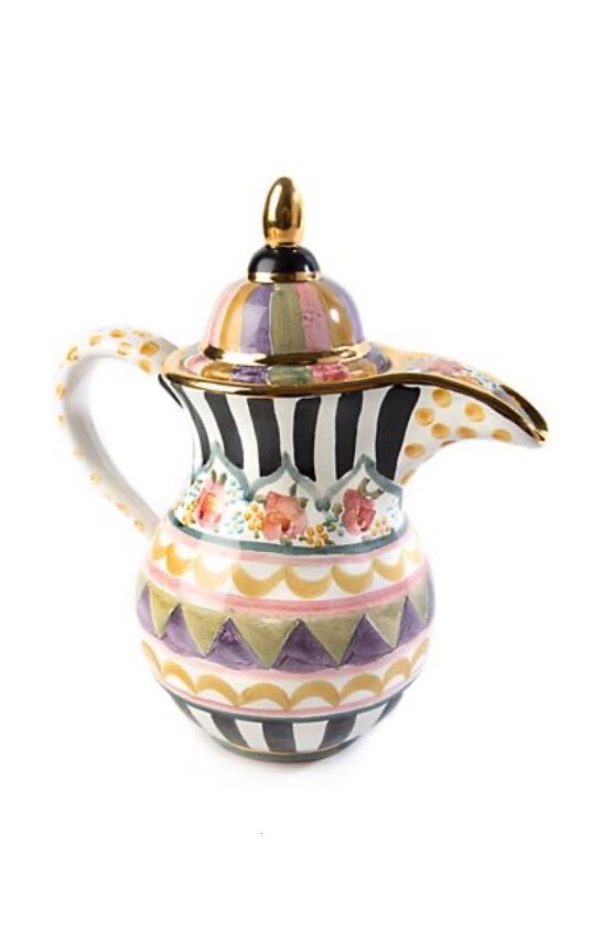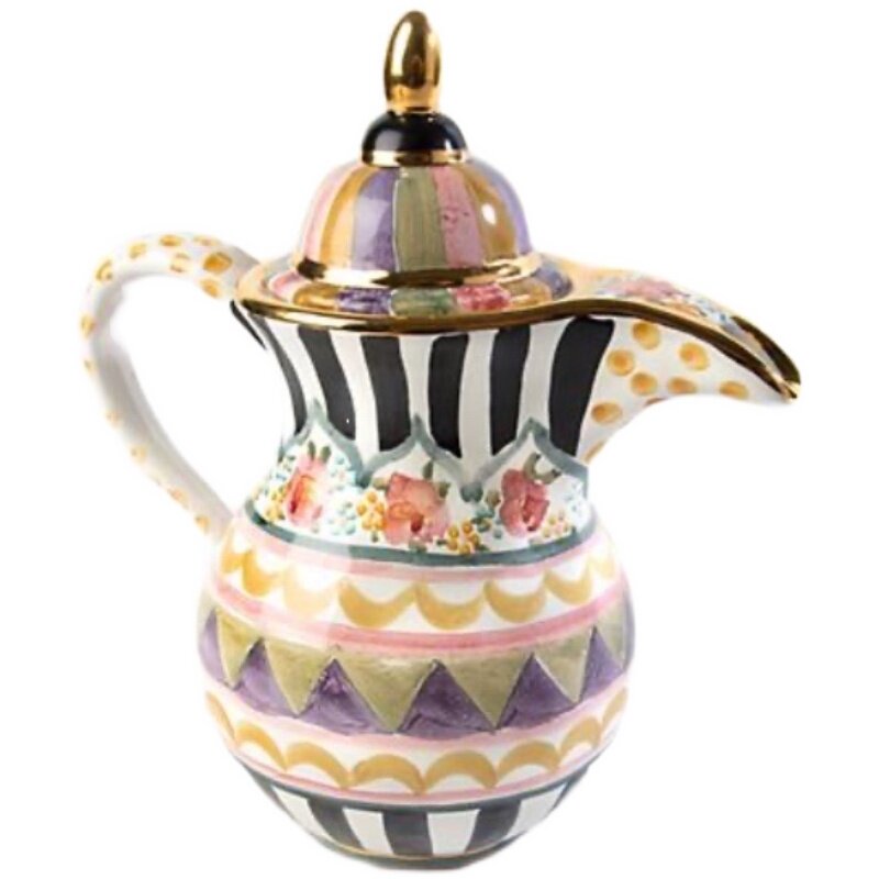 Керамические изделия.Ширина 24 см, высота около 27 см, объём около 1,4 л.Получите дозу кофеина! Красивые нарисованные вручную цветы, полоски и закорючки на нашем кофейнике Bazaar придают этому ритуалу игривый дух. Поблескивая золотым блеском на носике и крышке, он’Это также идеальный способ преподнести турецкий кофе или другие горячие напитки. Переверните его, чтобы увидеть следы мастеров, создавших его в Авроре, штат Нью-Йорк. 9,5" wide, 10.75"высокий, вместимость 6 чашек. Керамика ручной работы, расписанная вручную, с золотыми блестящими украшениями. Ручная работа в Авроре. Изделия могут различаться в зависимости от того, что каждое изделие изготавливается вручную. Стирайте вручную с осторожностью.