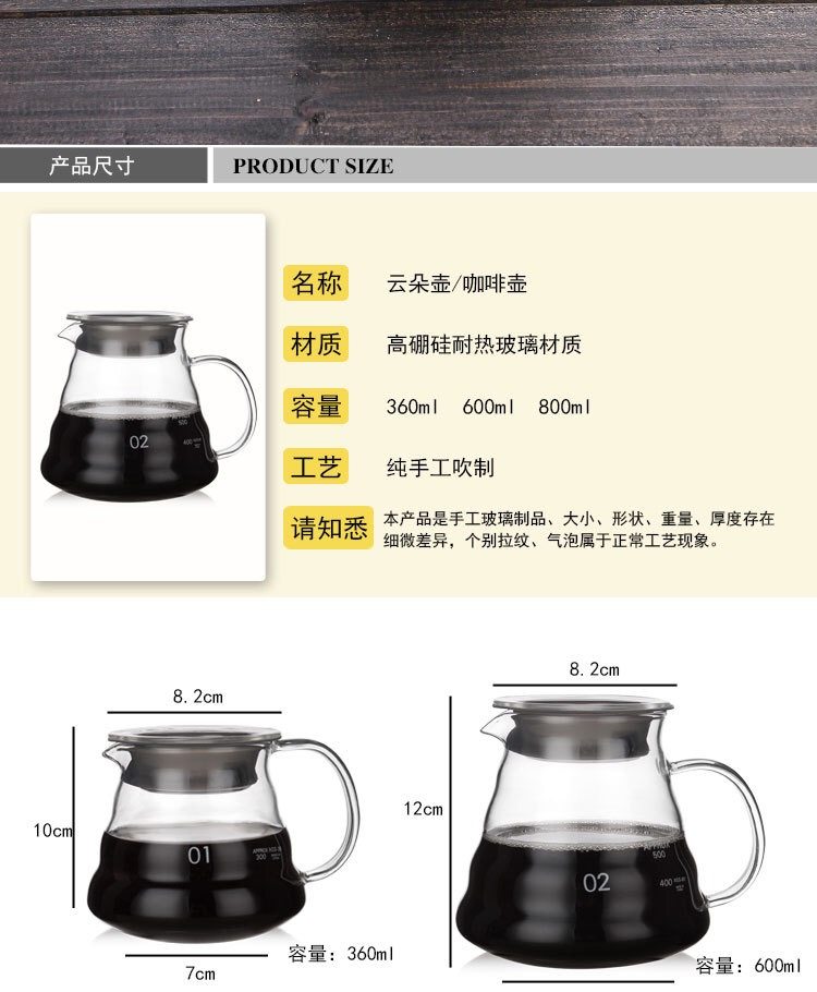 Стекло из кофейного кофейного горшка 360/600/800 мл облачный горшок для дома американский стиль протекающий