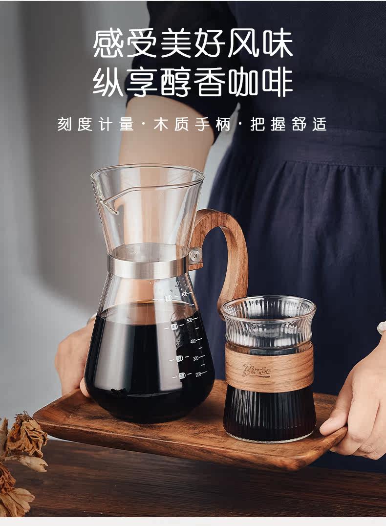 Bincoo Hand -Coffee Sharing Pot и деревянная ручка капельная фильтр стеклян