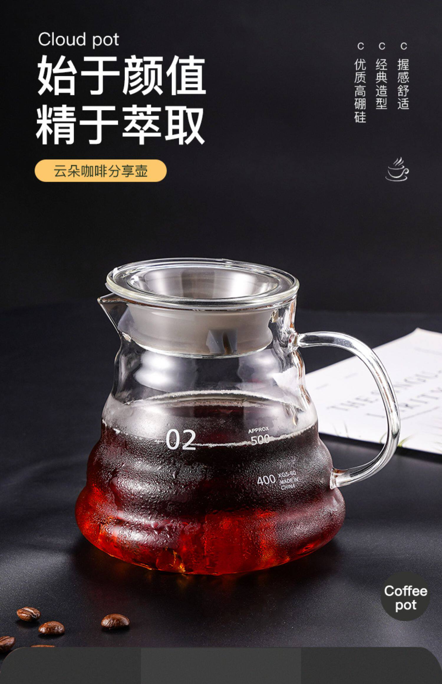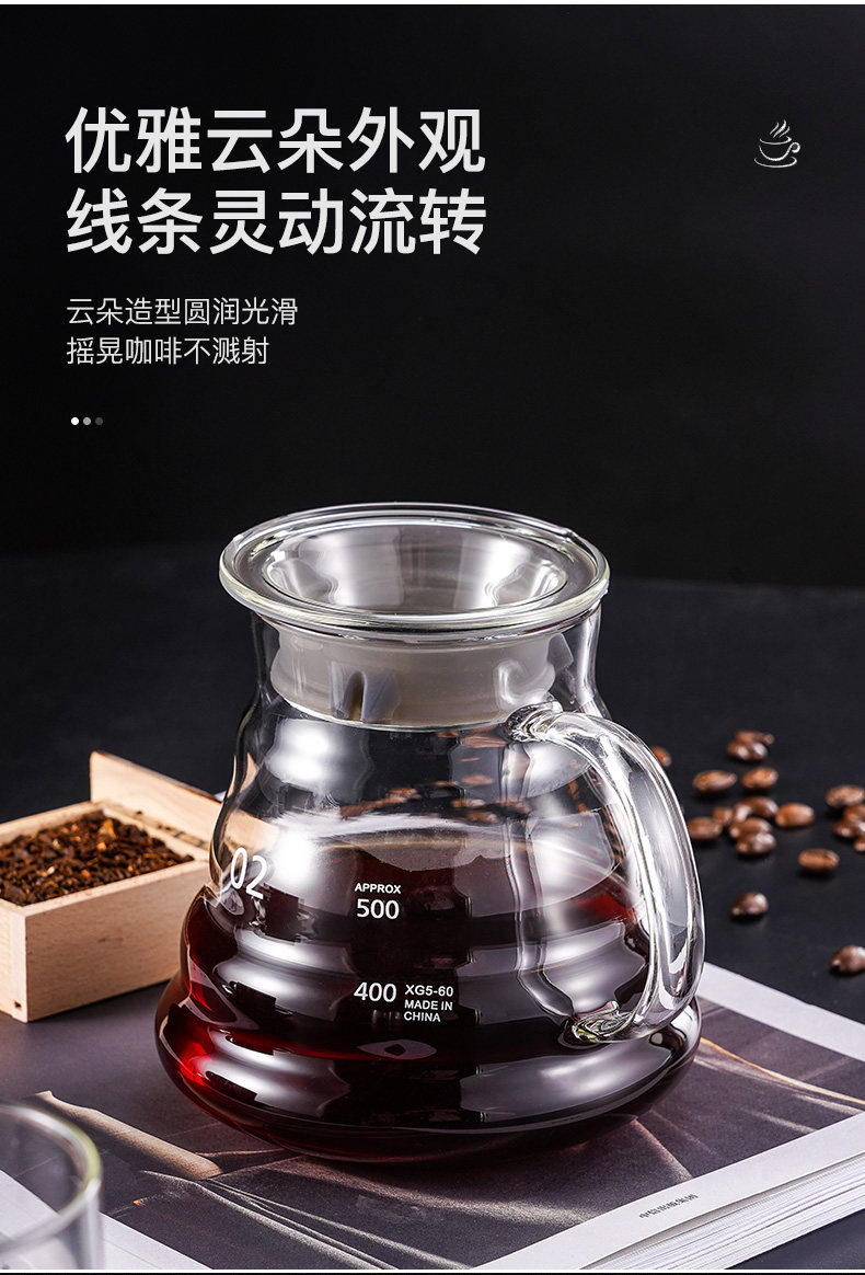 Рука -Распределение кофе кофе 350/600 мл облачный горшок американский кофейный кофейный кофейный кастрюль High Peng Silicon Heat -устойчивый