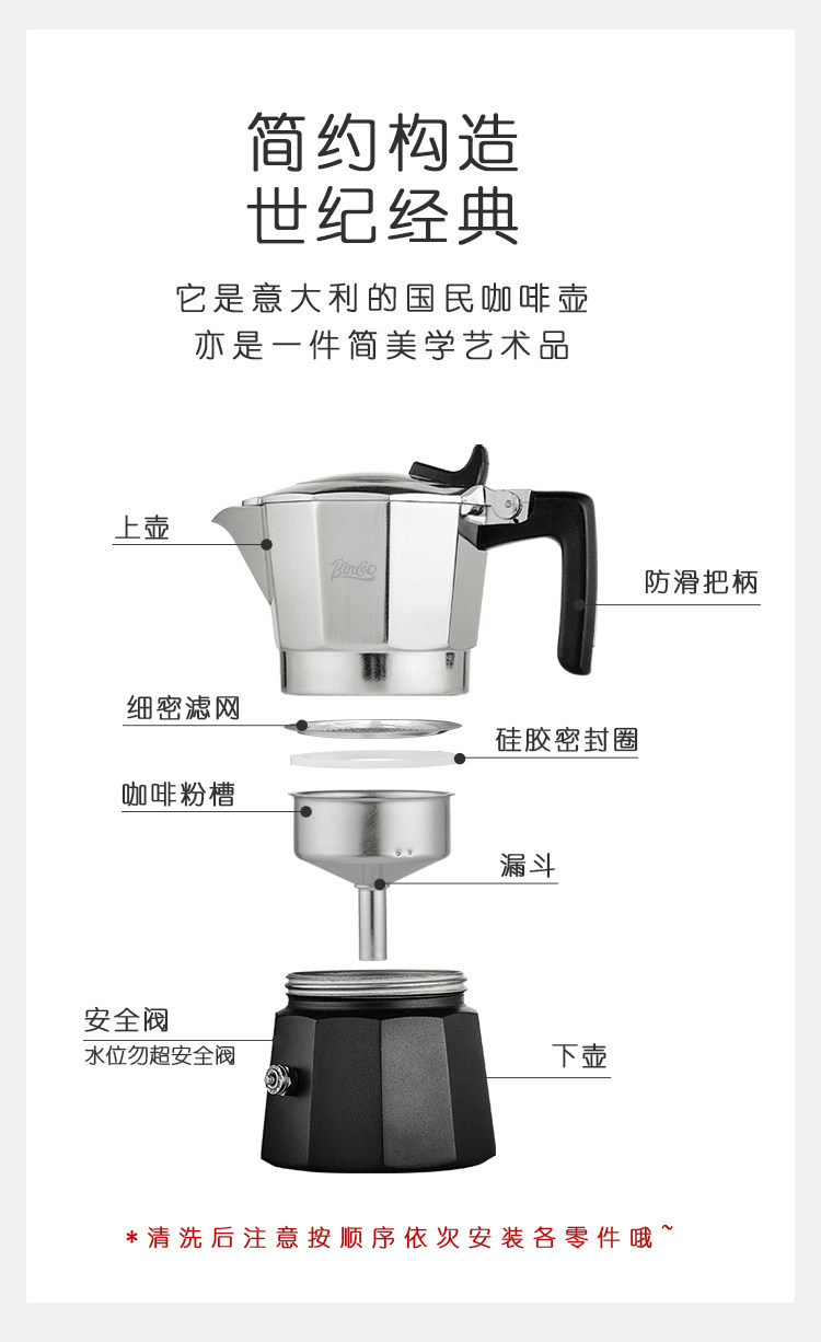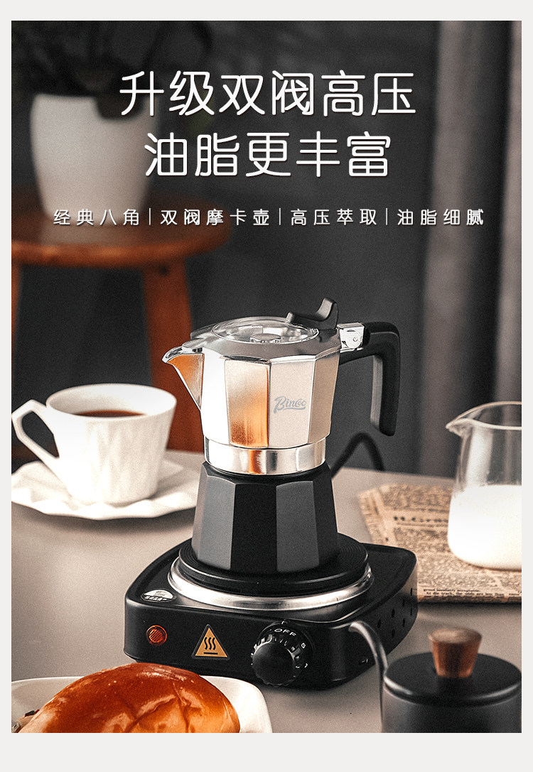 Bincoo Mocha Pot с двойным клапаном итальянский кофейный кастрюль вареного домовладельцы.