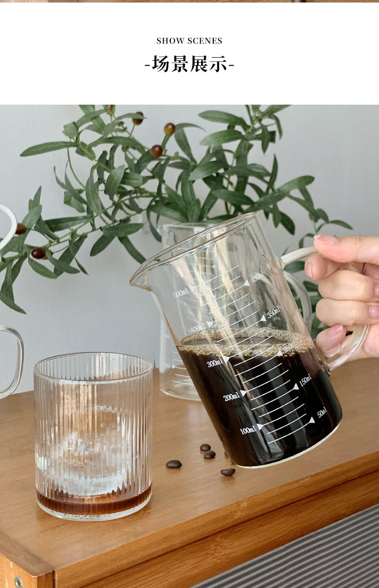 Стеклянный кофейник со шкалой, вместительный и большой термометр, измерительная кружка, увеличенная толщина