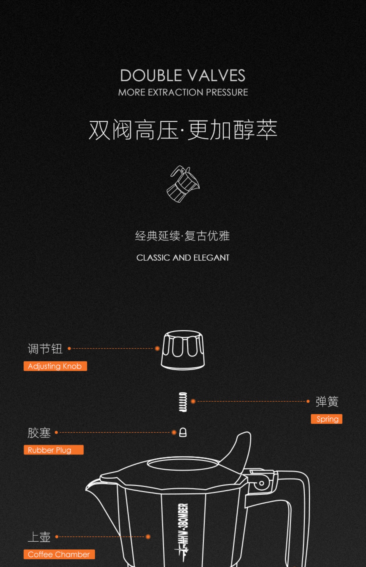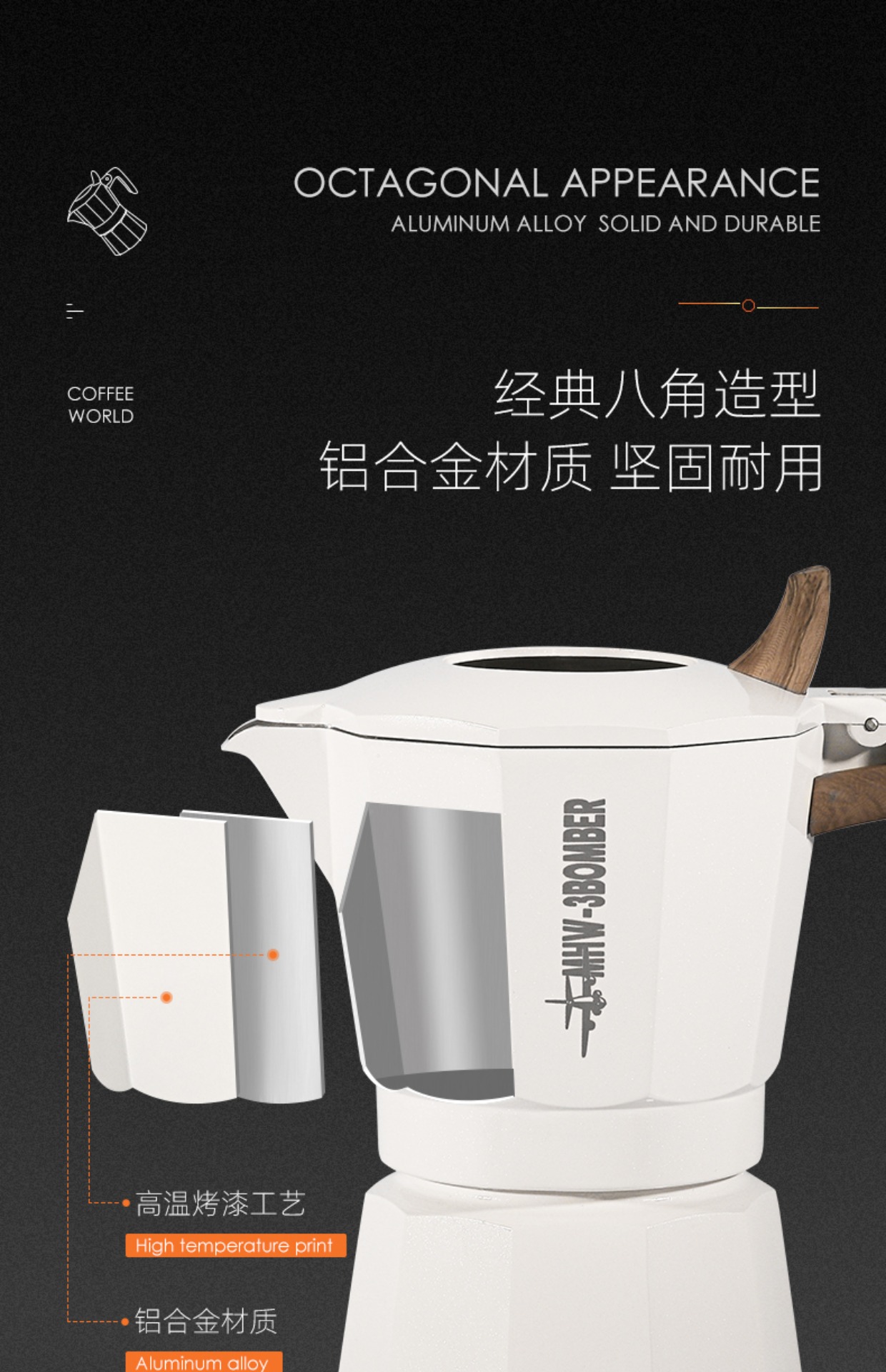 Официально уполномоченные бомбардировщики MHW-3 бомбардировщика двойного клапана мокко горшок, чтобы сделать измерение кофейного горшка для кемпинга кемпинг